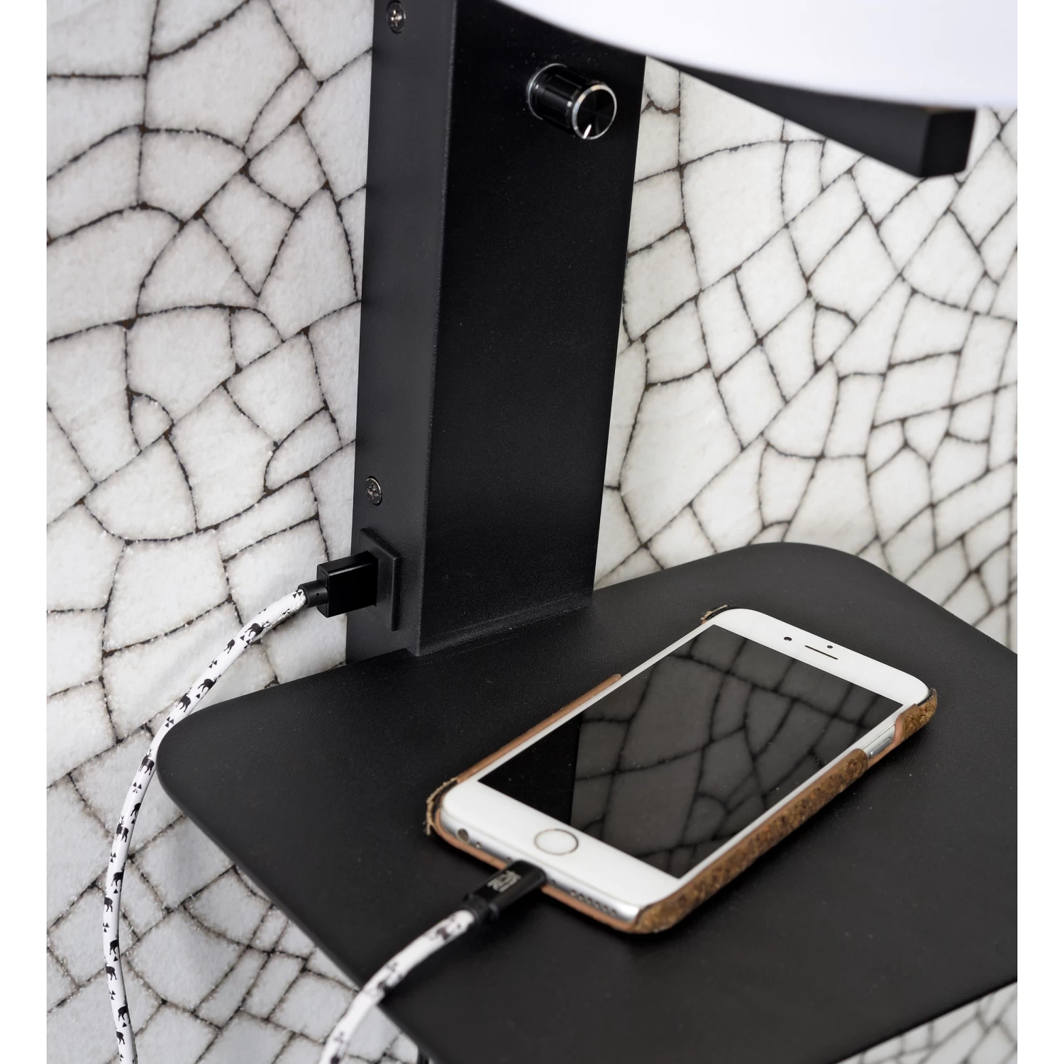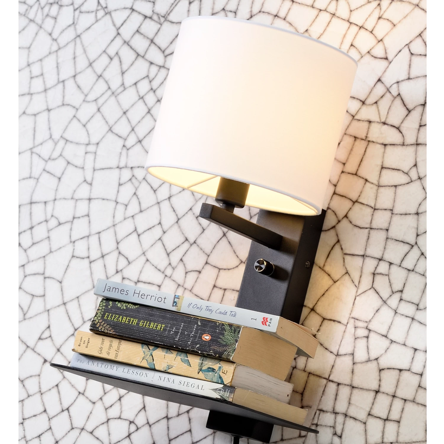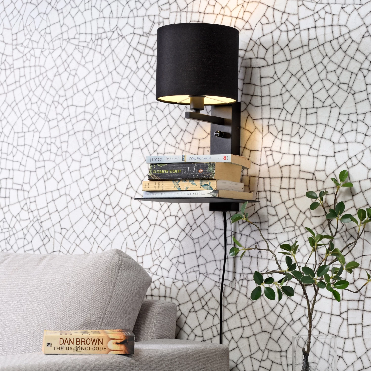 The lamp features a shelf offering space to store a few of your favourite books, mobile phone, reading glasses etc.