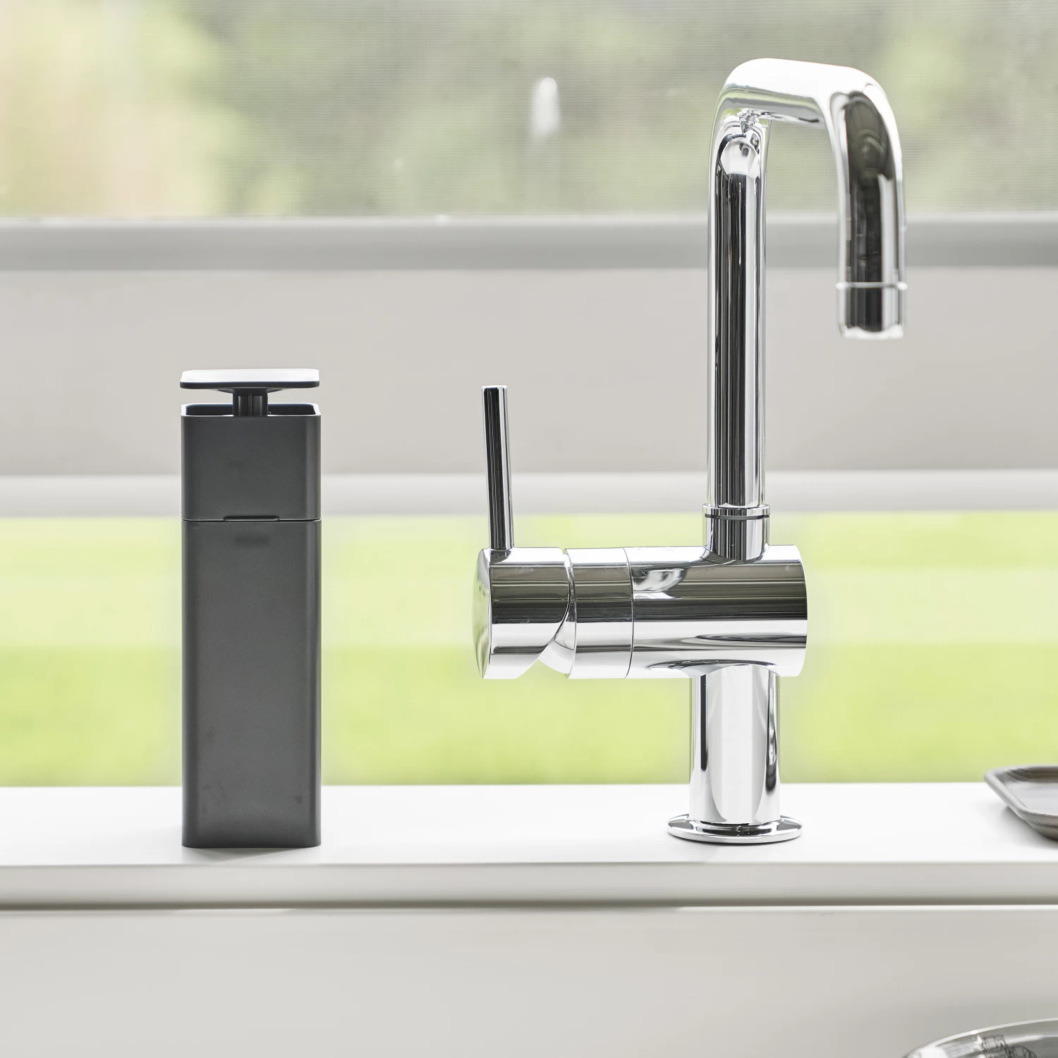 This innovative washing-up liquid dispenser brings a touch of style and practicality to any kitchen sink side.