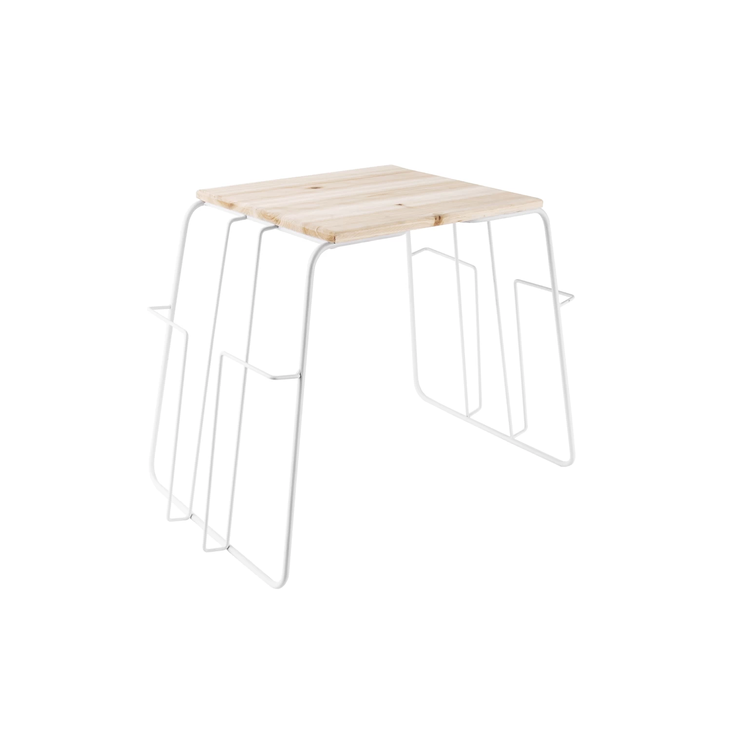 The rack has been finished with a mid-century inspired look and the clean white metal and neutral wooden top mean it’s sure to fit in with any décor.
