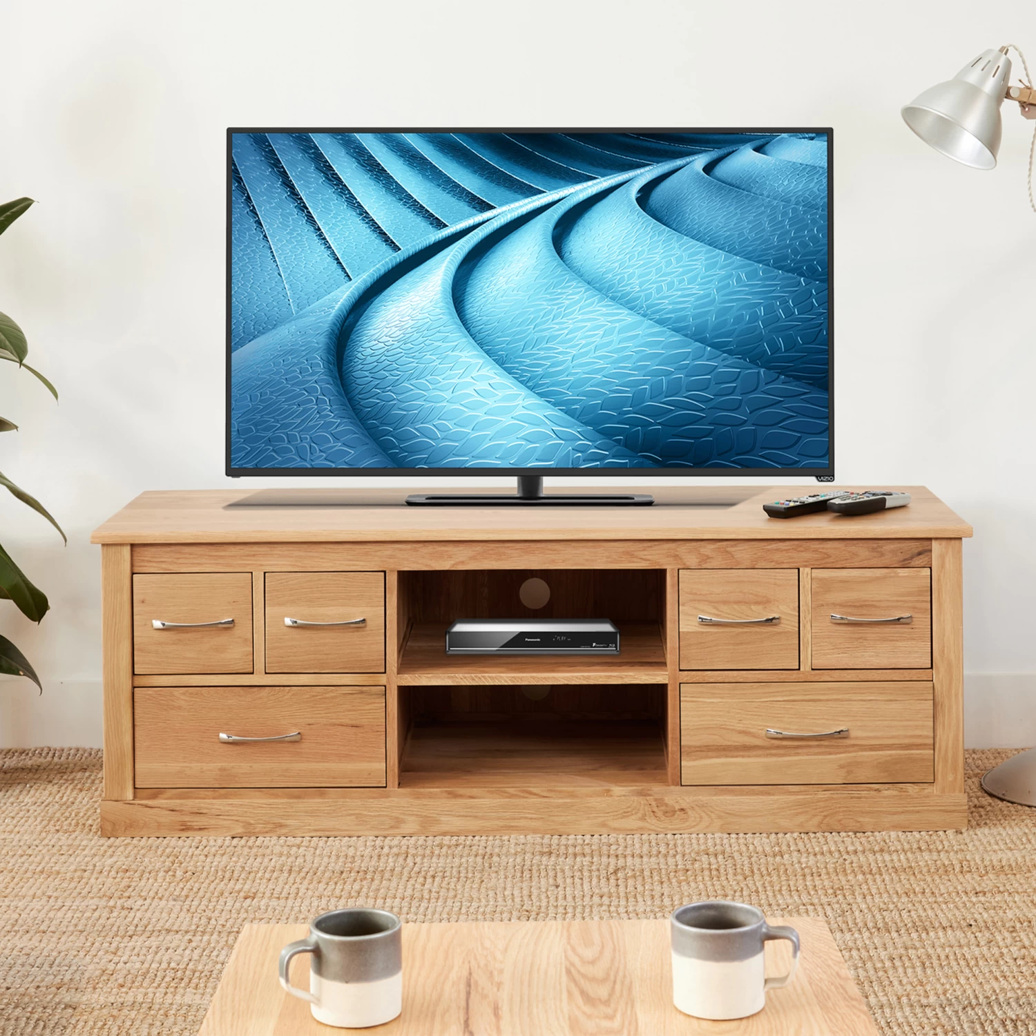 Our solid oak widescreen TV unit has been designed to hold a television which is up to 85″ wide (if you’re lucky enough to have one that size!).