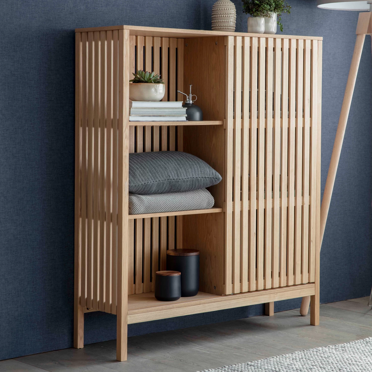 Its simple yet practical design features a moving front panel leaving half of the cabinet exposed, giving you the choice on how to style, display and organise.