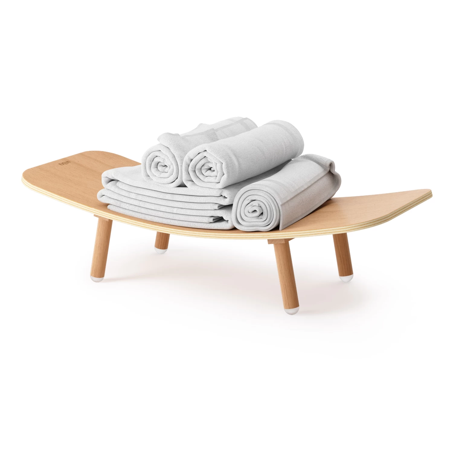 For those who need additional storage, this stylish towel rack alternative can be easily stacked.